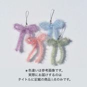 キラキラする毛糸で編んだこのリボンストラップは、カバンに付けるだけで、一気に可愛さアップ!
