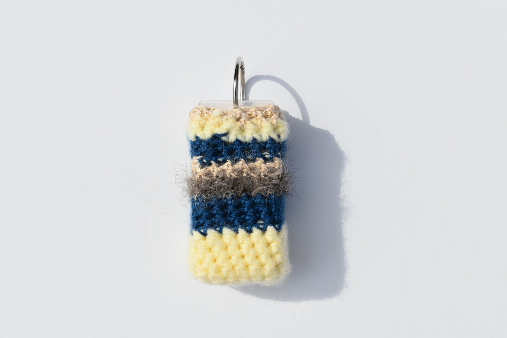 このケースは、持つだけで気分が明るくなるように、ひとつひとつ心を込めて編みました。