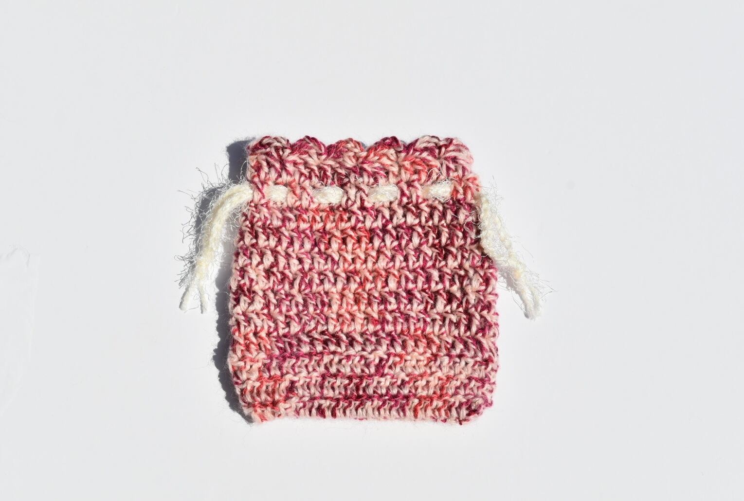 2 種の毛糸が織りなす、キュートな巾着ができました!